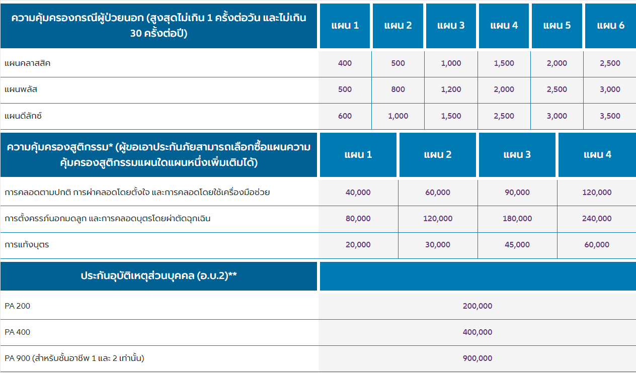 *ความคุ้มครองสูติกรรม ผู้เอาประกันภัยต้องสำรองจ่ายล่วงหน้า